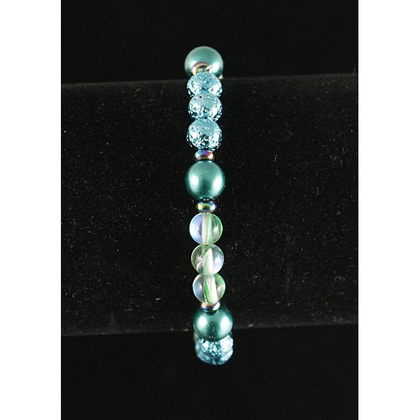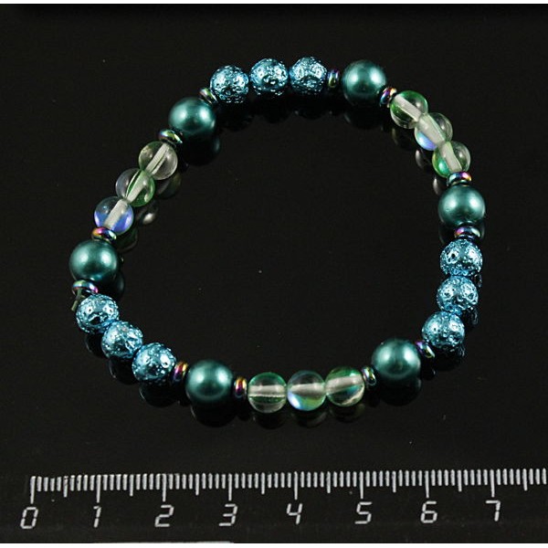 Браслет гематит тонир. рондель, опал иск. зеленый, лава тонир., майорка, шарик 6 и 8мм