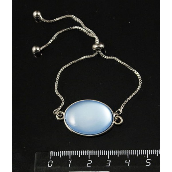 Браслет пластик голубой (эффект опала), овал 25х18мм, силиконовый стоппер