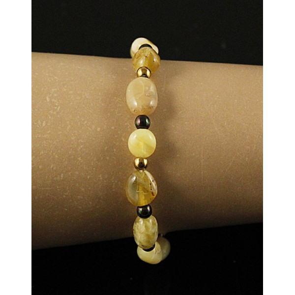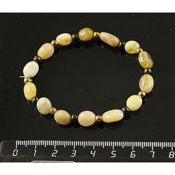 Браслет опал желтый (овалы) и гематит (шарик золотистый и черный хамелеон)