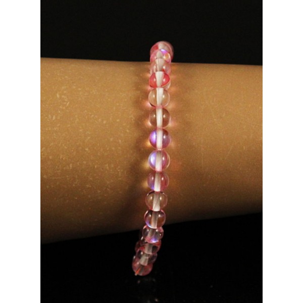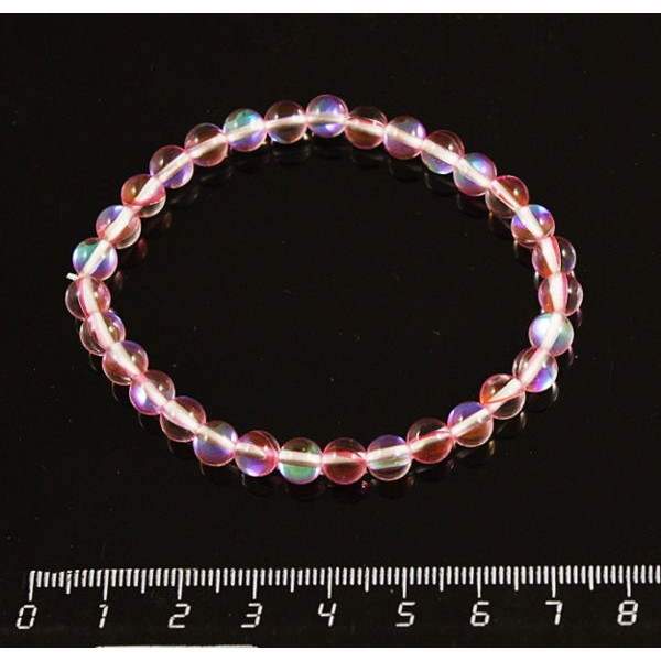 Браслет опал иск. розовый шарик 6мм