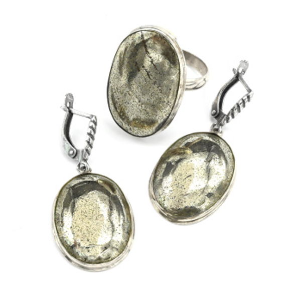 Кольцо и серьги пирит "Овал"