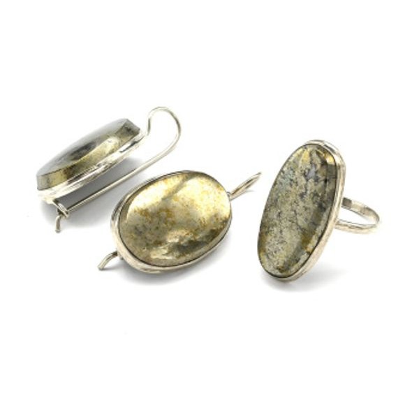 Кольцо и серьги пирит "Овал"