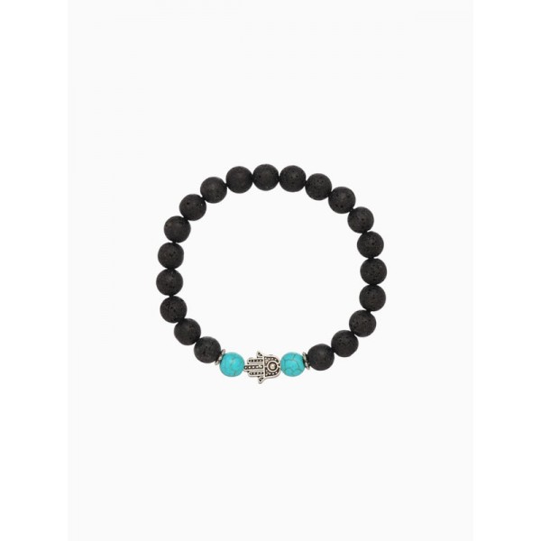 Браслет «Хамса», длина 18 см, камень пирит, лава, чёрный, бирюзовый