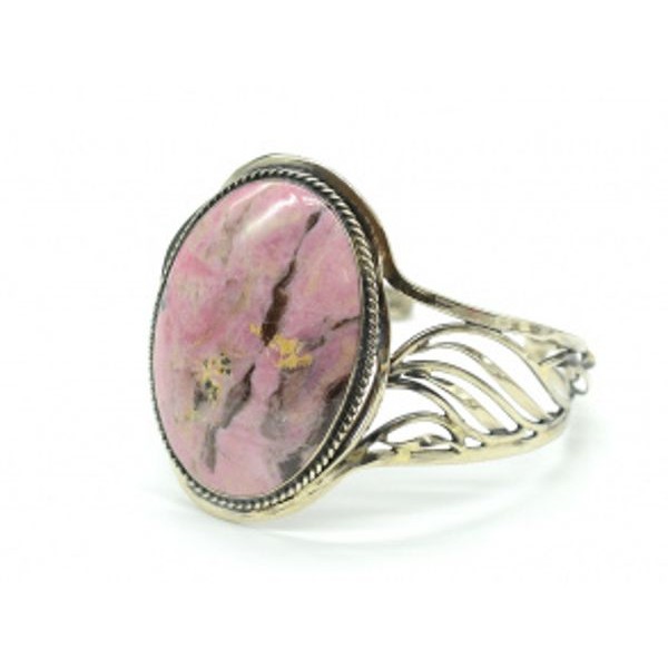 Кольцо из родонита, литое широкое, цвет родиум, се..