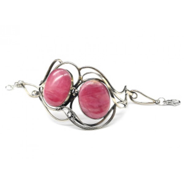 Брошь из родонита "вензель", основа 70х2.4мм, овал..