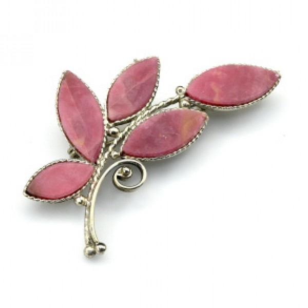 Брошь родонит "Веточка" малая 51*30мм., м9