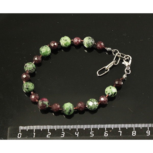 Браслет цоизит нат. (шарик 8мм) и кварц тонир. цвет рубин (шарик 6мм), огранка