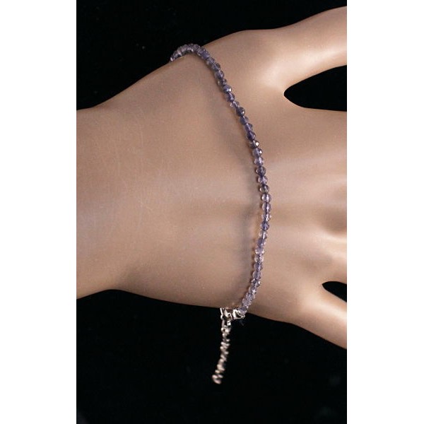 Браслет из кордиерита (иолит), 19см + цепочка, шарик гр.3-4мм