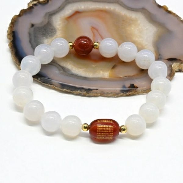 Браслет из агата светлого с сердоликом, 16см