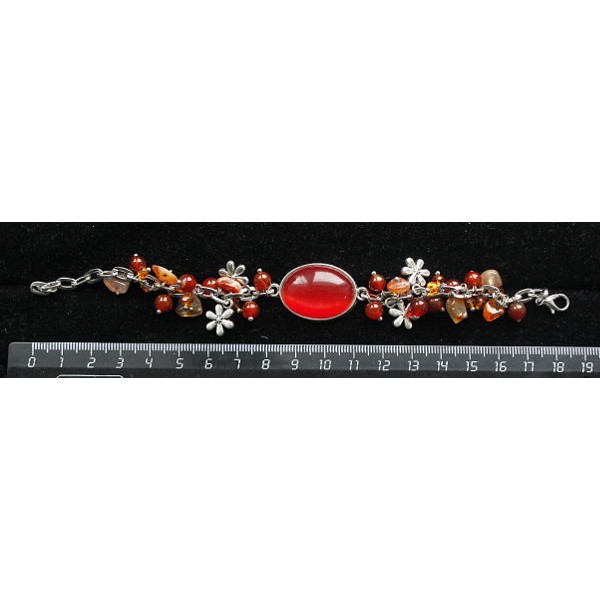 Браслет с кабошоном из пластика "два цветка", овал 25х18мм, цвет красный, + шарики/галтовка сердолик