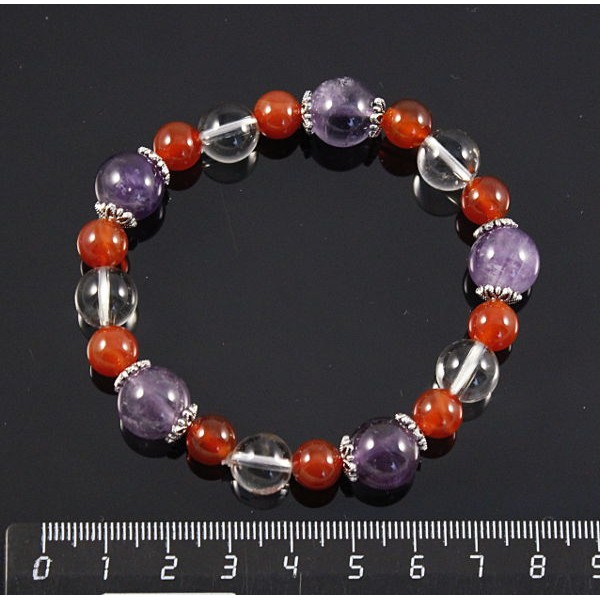 Браслет из аметиста, сердолика и горного хрусталя, шарик