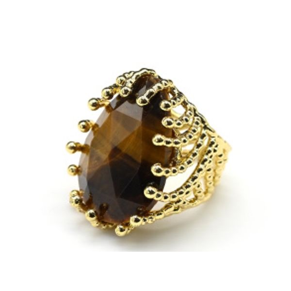 Большое кольцо с тигровым глазом из ювелирного сплава