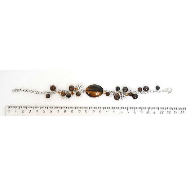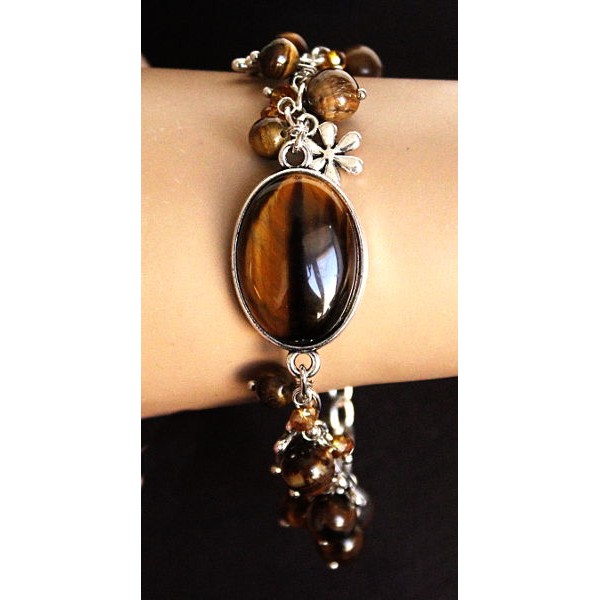 Браслет из тигрового глаза, овал 25х18мм + шарик и галтовка, на цепочке