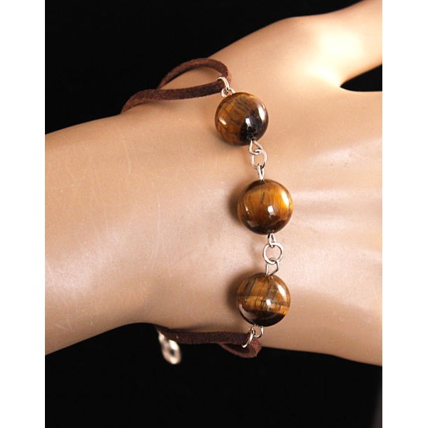 Браслет из тигрового глаза "3 шарика", на шнурке