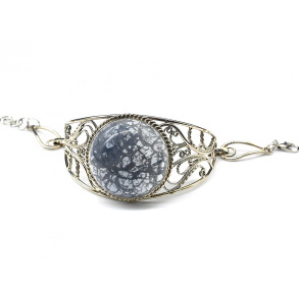 Брошь из флюорита, с ажурным контуром, цвет ант. серебро, овал 25х18мм