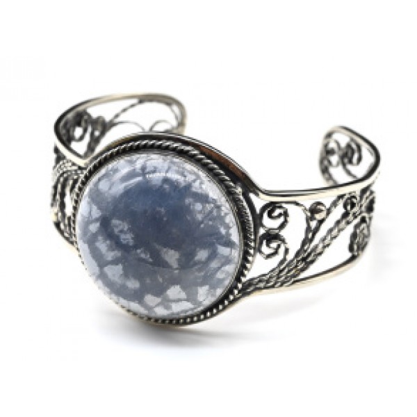 Брошь из флюорита, с ажурным контуром, цвет ант. серебро, овал 25х18мм