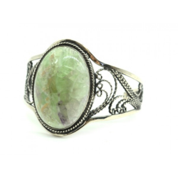 Брошь из флюорита, с ажурным контуром, цвет ант. серебро, овал 25х18мм