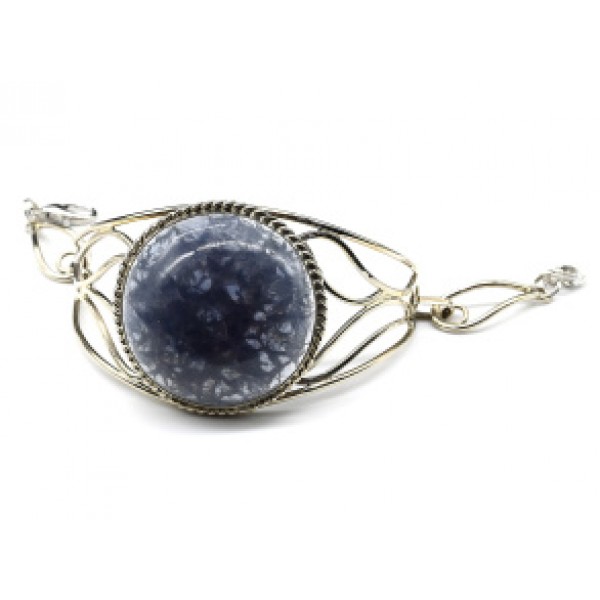 Брошь из флюорита, с ажурным контуром, цвет ант. серебро, овал 25х18мм