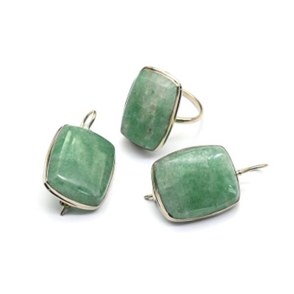 Кольцо и серьги из флюорита "Прямоугольник"