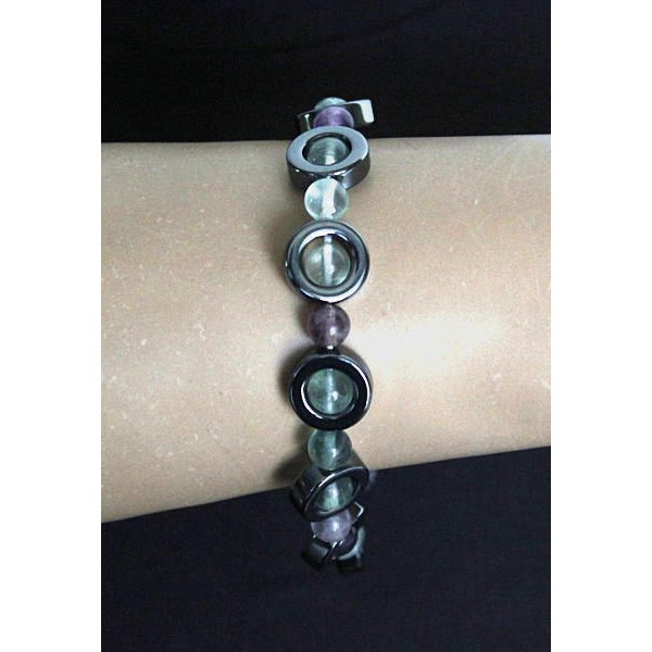 Браслет из флюорита, шарик 6мм в круглой рамке из гематита