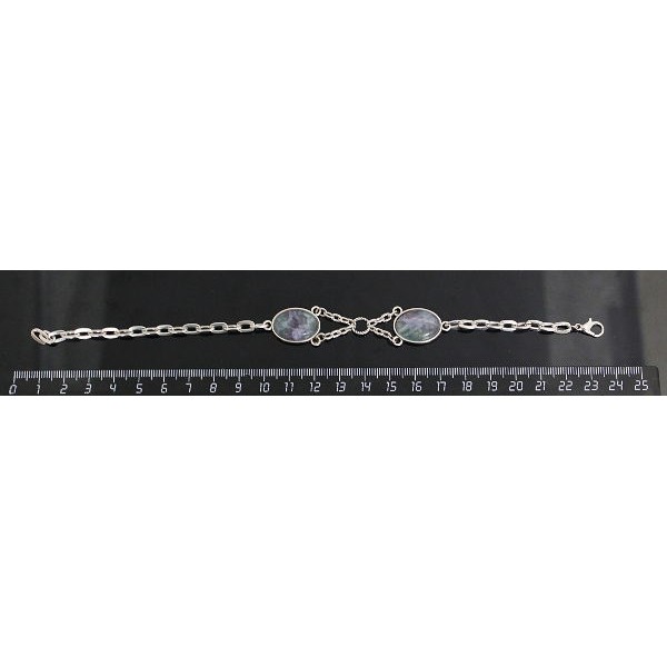 Браслет из флюорита 2 камня, сеттинг 18х13мм, на цепочке
