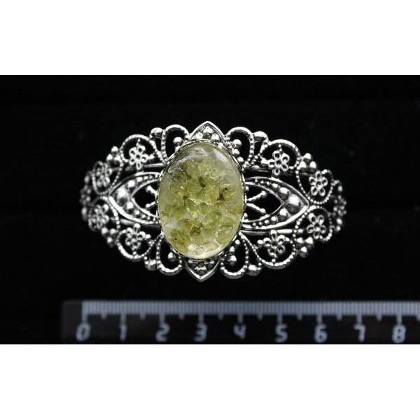 Браслет из хризолита (кабошон-мозаика), овал 25х18мм, жесткая основа, цвет ант.серебро