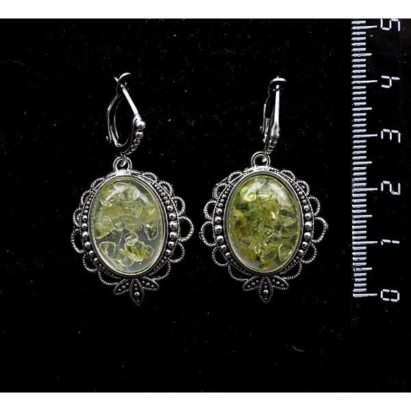 Cерьги из хризолита (кабошон-мозаика), овал 18х13мм, оправа "трилистник", швензы посеребрение