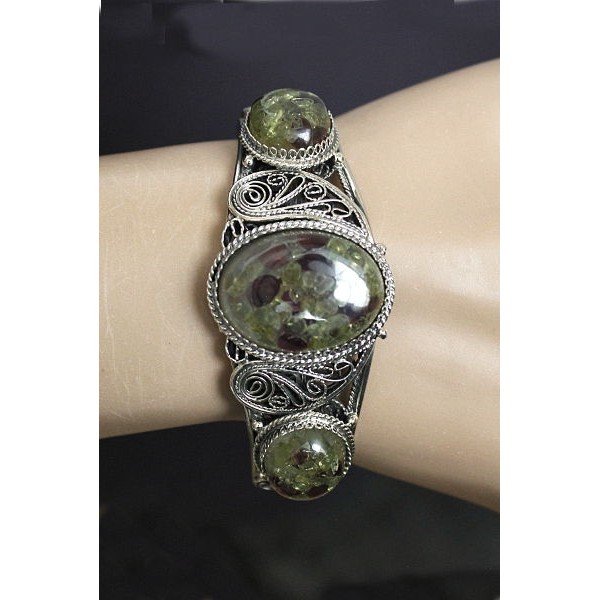 Браслет из цоизита, филигрань, ручная работа, каме..