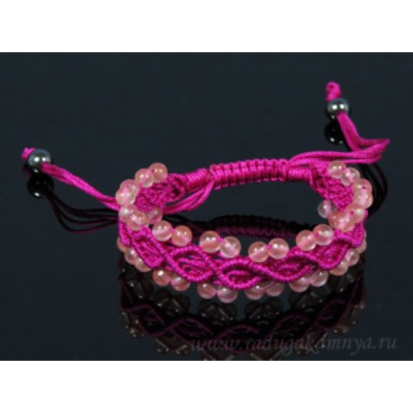 Браслет плетеный фуксия с халцедоном шарик 5мм