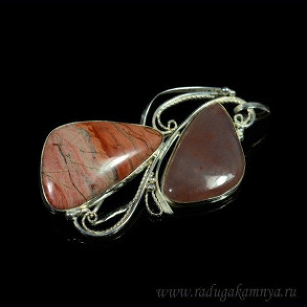 Брошь-кулон из яшмы и халцедона в посеребрении 57*36мм.