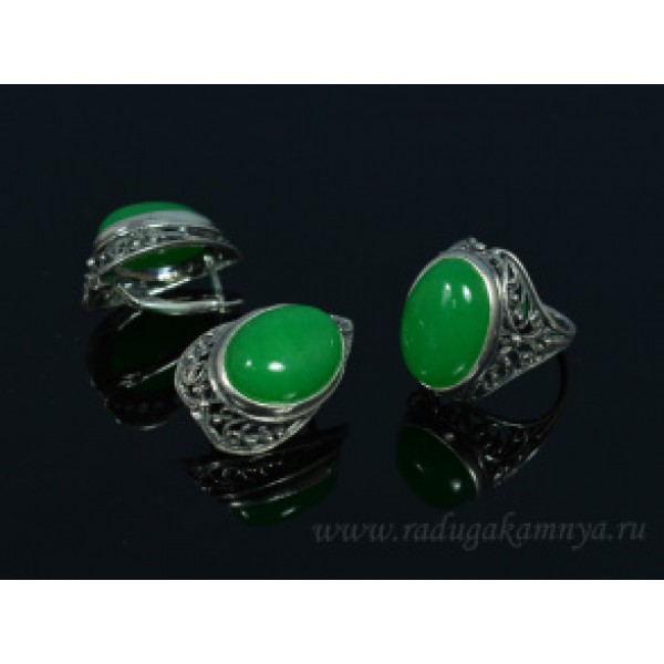Кольцо и серьги кварц (имитация хризопраза)