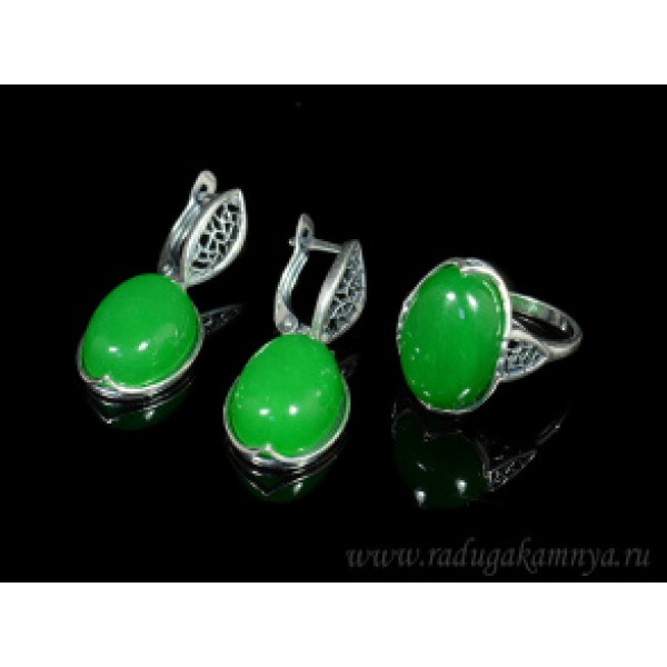 • Кольцо и серьги с кварцем (имитация хризопраза)