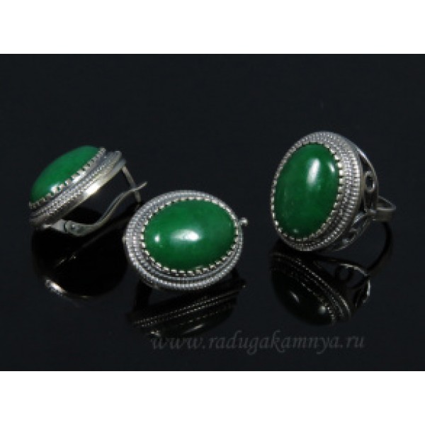 Кольцо и серьги с кварцем (имитация хризопраза)