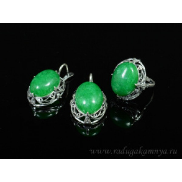 Кольцо и серьги с кварцем (имитация хризопраза)
