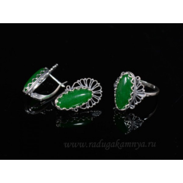 Кольцо и серьги с кварцем (имитация хризопраза)