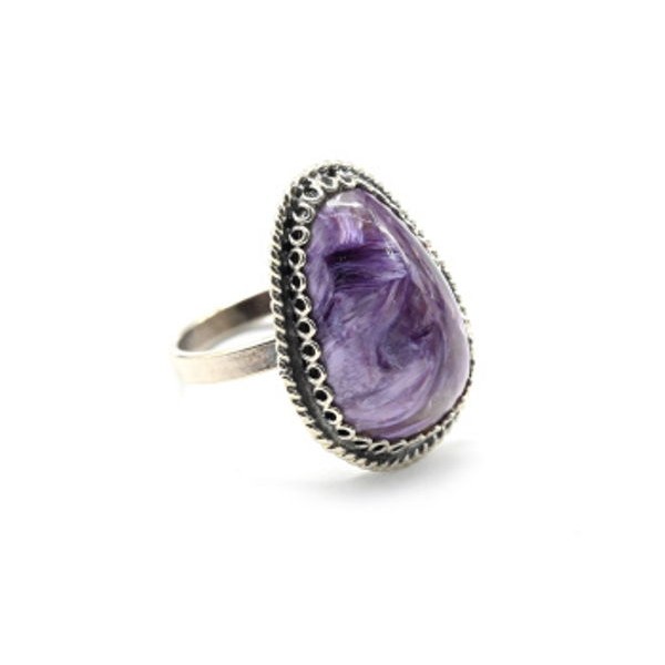 Кольцо с чароитом "Капля" 15*30мм..