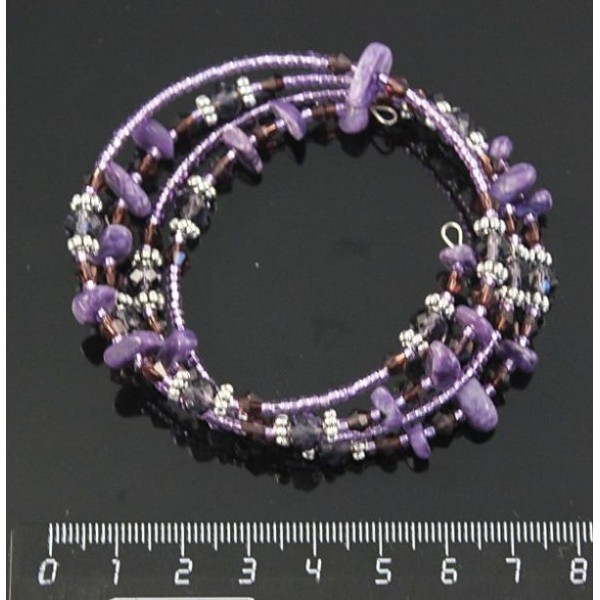 Браслет из чароита на струнке 1 оборот с хрусталем и бисером на застежке