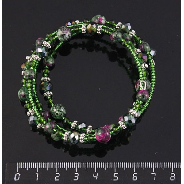 Браслет на струнке из цоизита и фиолетового муранс..