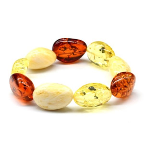 Браслет из янтаря галтовка лимонный, молочный, коньячный, 38г