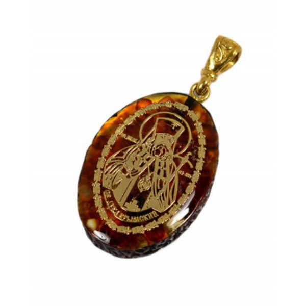 • Кулон с янтарем иконка "Святой Лука Крымский" овал 21*31мм (иск.)