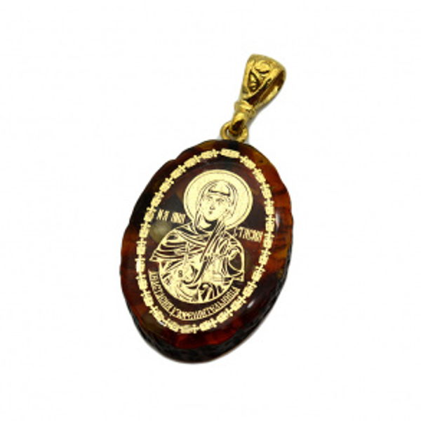 Кулон с янтарем иконка "Анастасия Узорешительница" овал 21*31мм. (иск.)