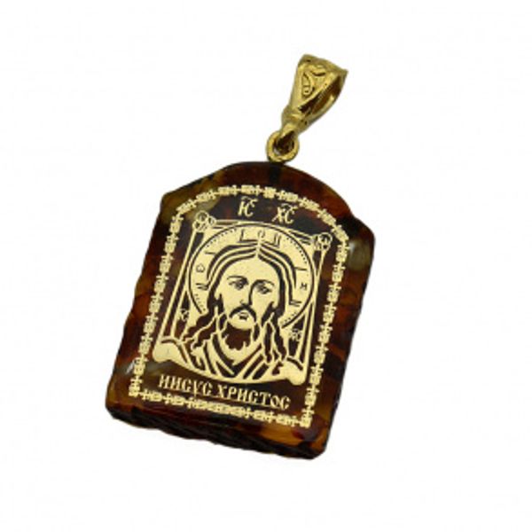 Кулон с янтарем иконка "Иисус Христос" арка 23*31мм. (иск.)