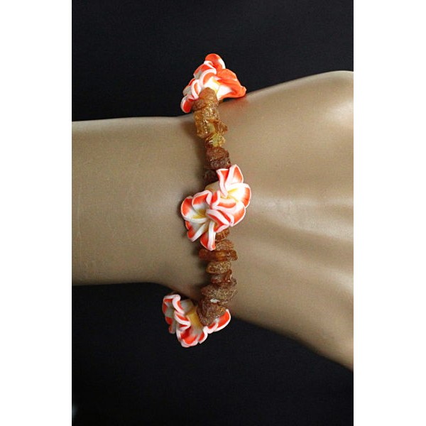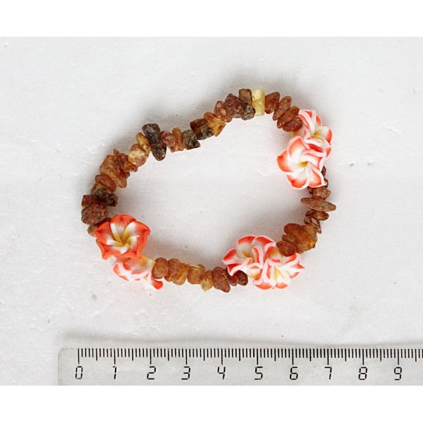 Браслет из янтаря (необработанный), галтовка + цветы из полимерной глины