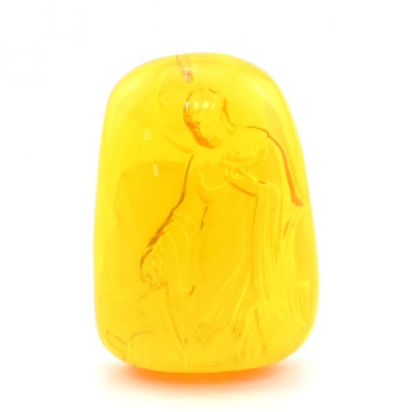 Кулон из янтаря с святым 37*52мм, цвет медовый (иск.)