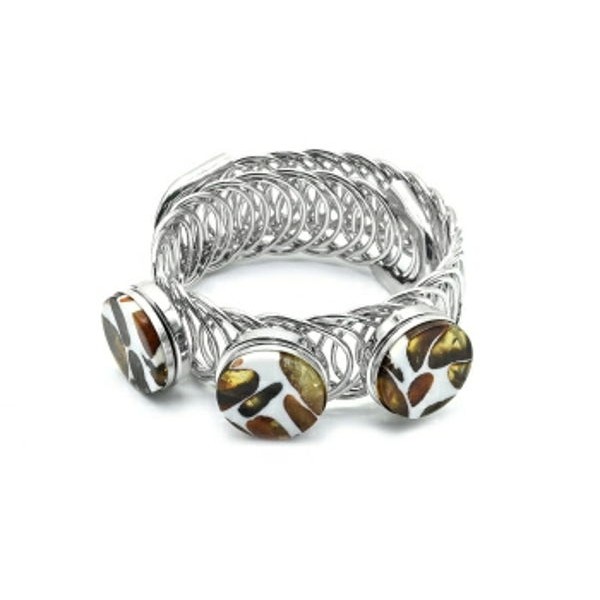 Браслет из медицинской стали с янтарной вставкой мозаика 3 круга 18мм