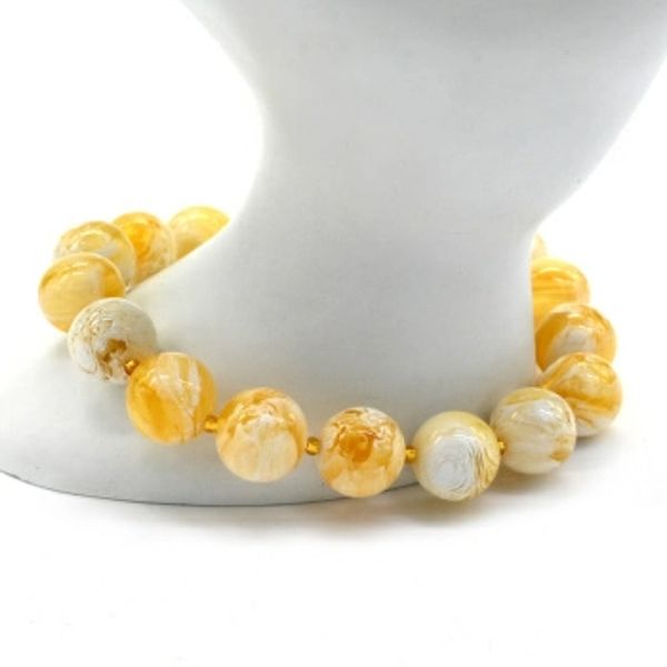 Браслет из шариков янтарных 12мм цвет лимонно-молочный, 18см (иск.)