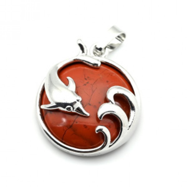 ku62-00667, ku62, ku62-, 62-, 62-00667, кулон_дельфин_24*26мм_с_яшмой, яшма_красная, кулон_яшма_красная