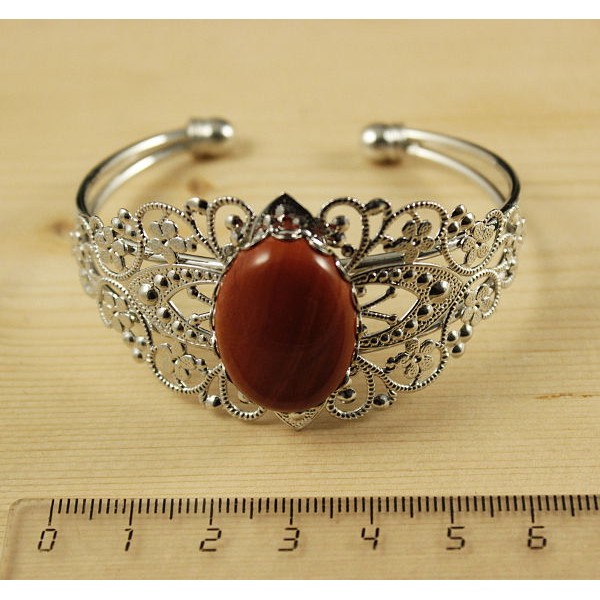 • Браслет из яшмы красно-коричневой, овал 25х18мм, жесткая основа, цвет ант.серебро