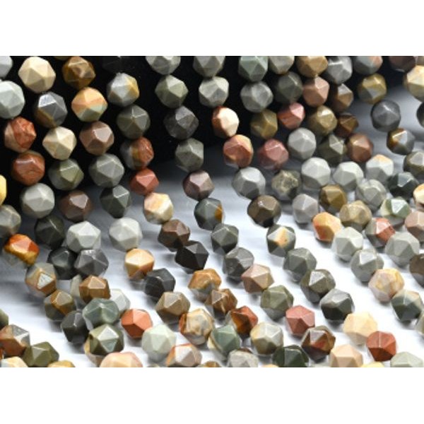 Бусины из яшмы уральской многогранник 8мм, 36см, 43 бусины