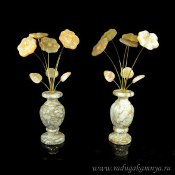 Ваза из селенита "Фиалка" (5 цв.) ангидрит большая 70*70*310мм